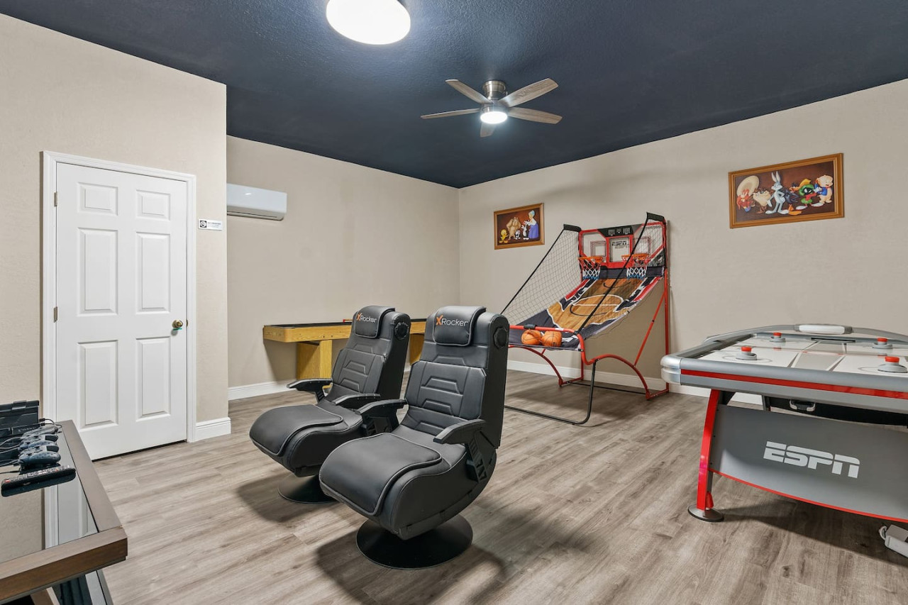 Relax in your private pool, challenge friends in the game room with Air Hockey, Basketball Arcade, Shuffleboard, and console games, or unwind with a round of pool table fun. Guests enjoy full access to resort amenities including a clubhouse, water park, and fitness center. Perfect for families and groups seeking comfort, entertainment, and resort-style living in sunny Orlando! 🌴🏡