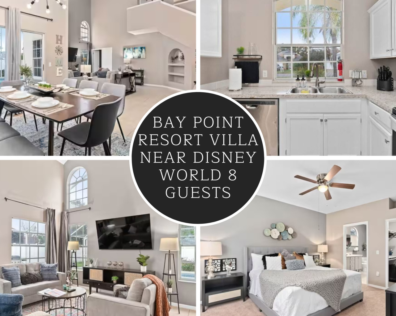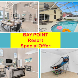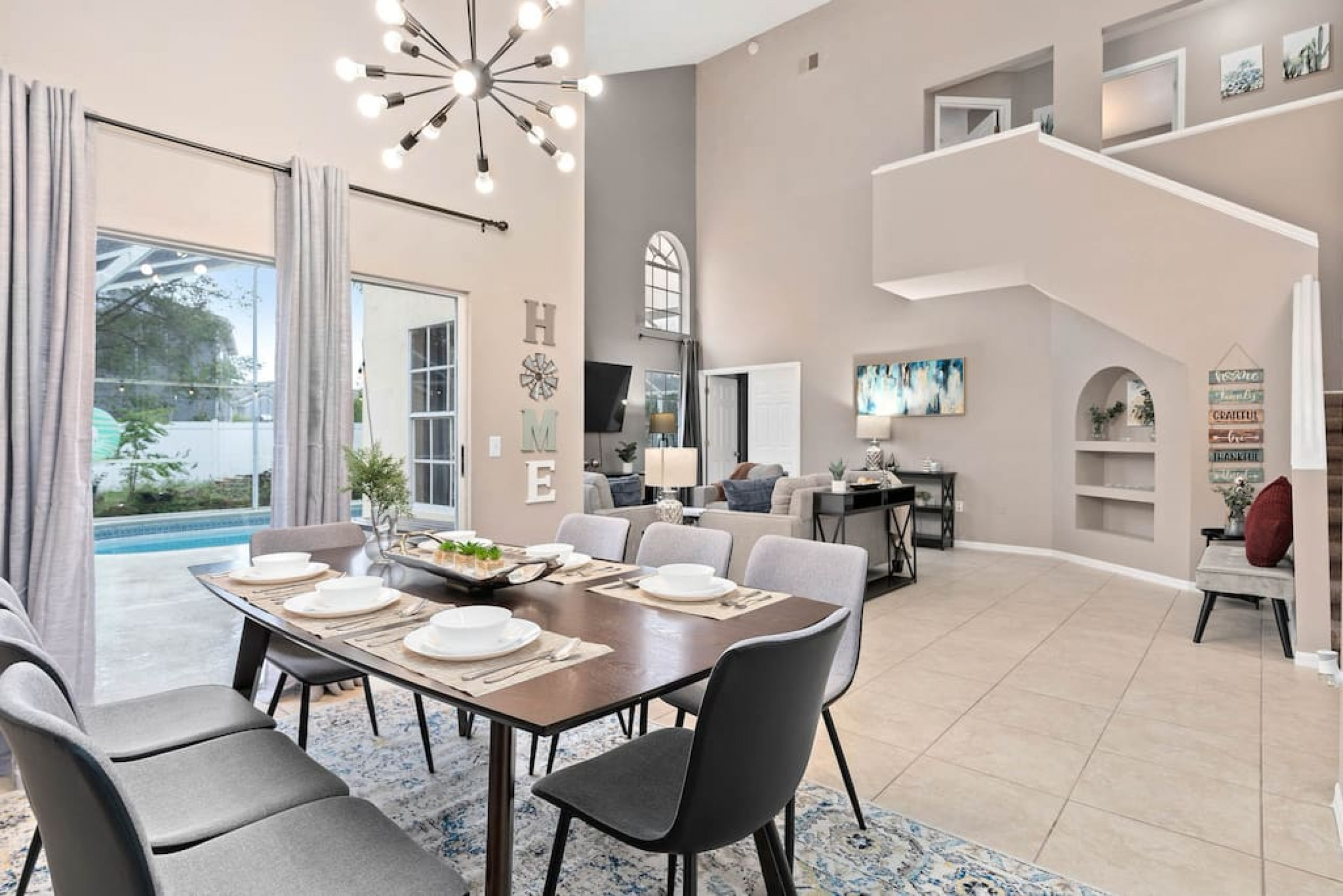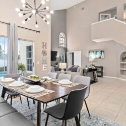 Perfect for a relaxing vacation with family and friends, our renovated home features 4 bedrooms, 6 beds, and 2.5 bathrooms. Just minutes from Disney World, enjoy a private south-facing pool, and a fully stocked kitchen. Kids will love the bunk beds and game room.