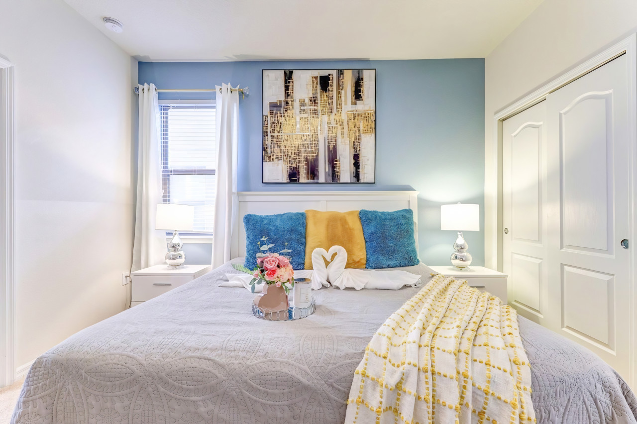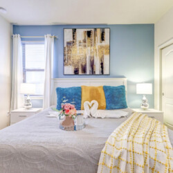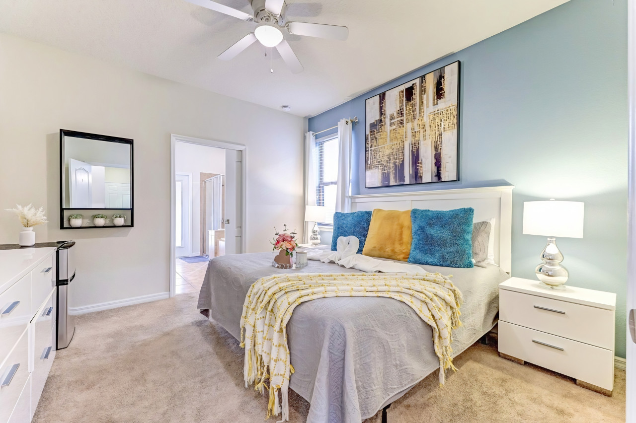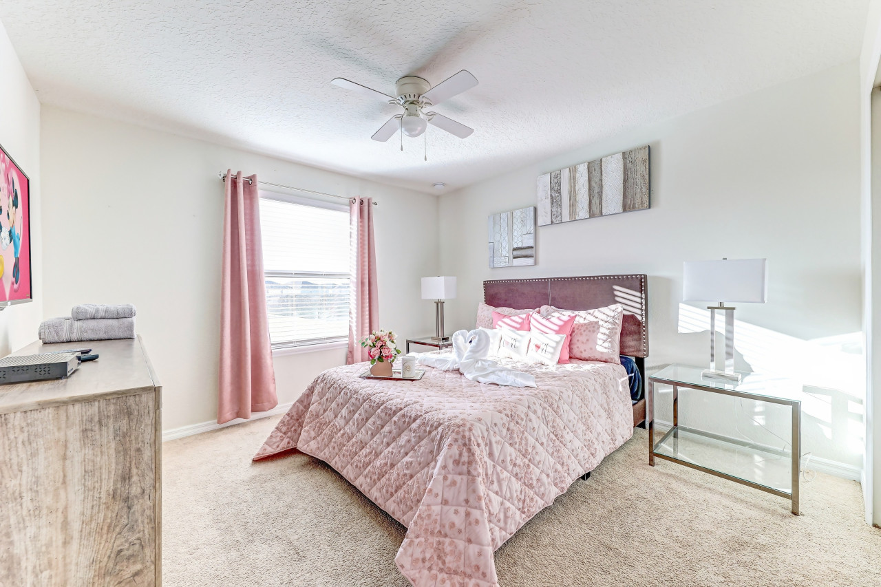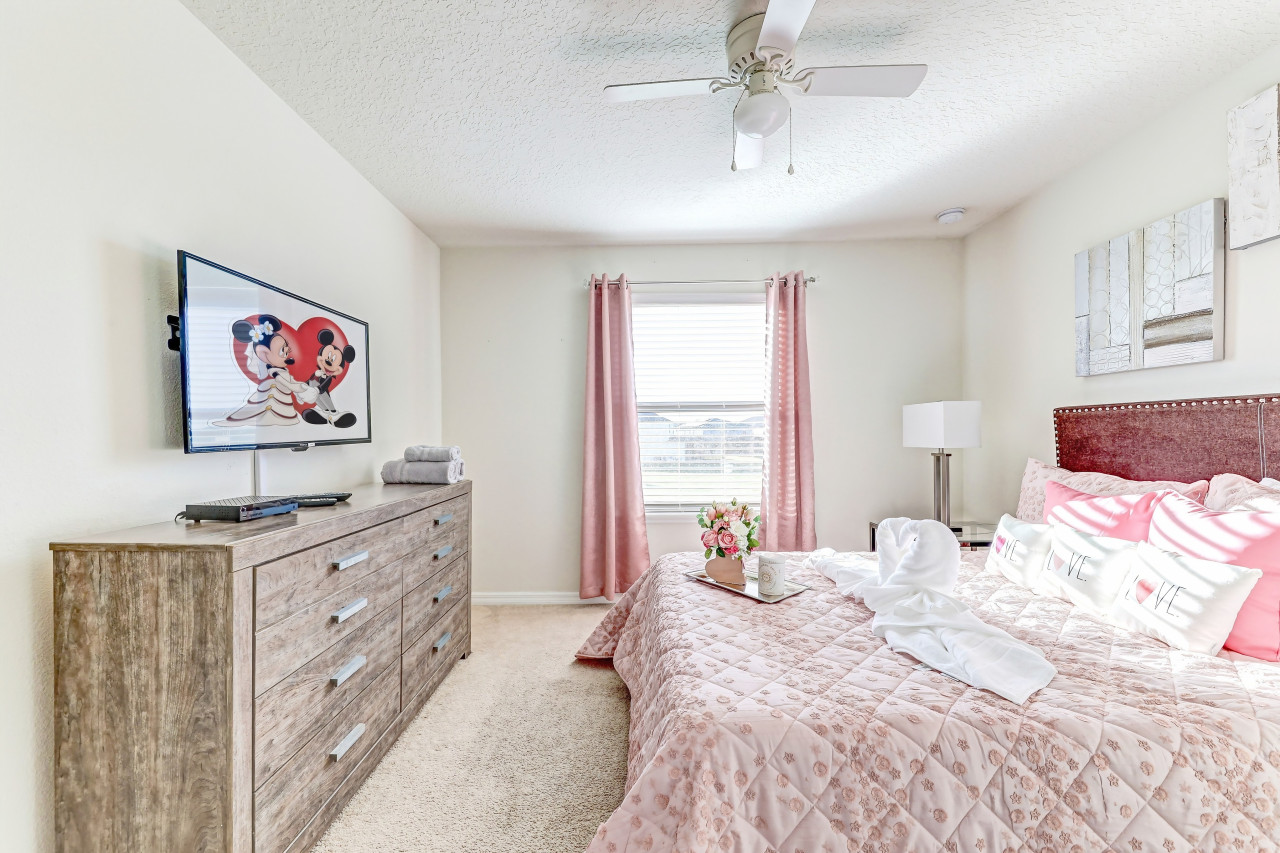 All bedrooms feature flat-screen TVs, luxury linens, comforters, designer pillows, and ceiling fans.