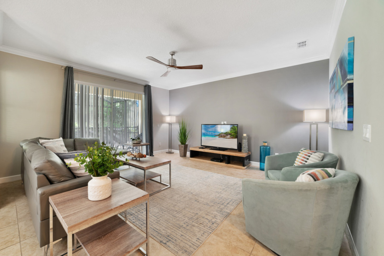 The backyard overlooks a conservation area, connecting you with Florida’s nature. Located in a gated resort, this villa is close to Disney and Universal Studios—your Orlando vacation starts here!