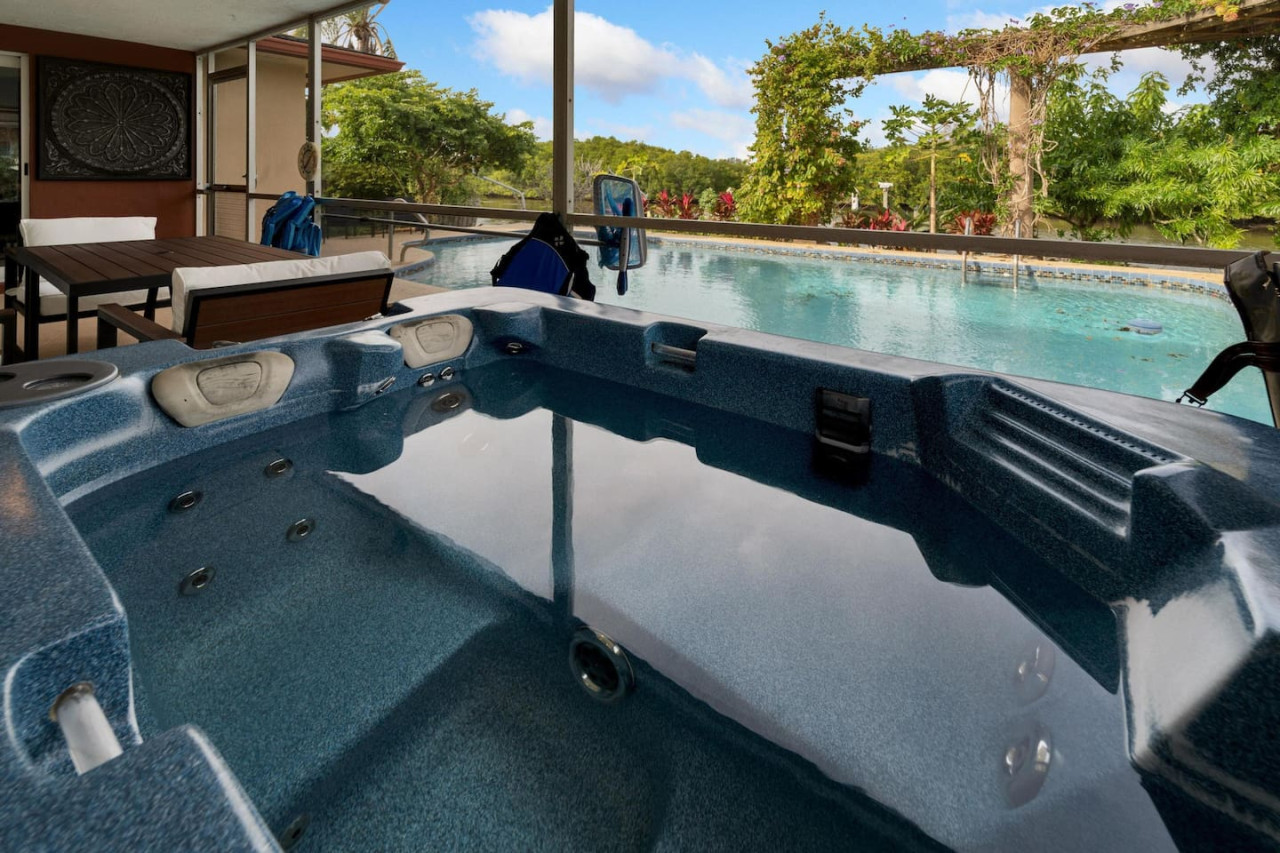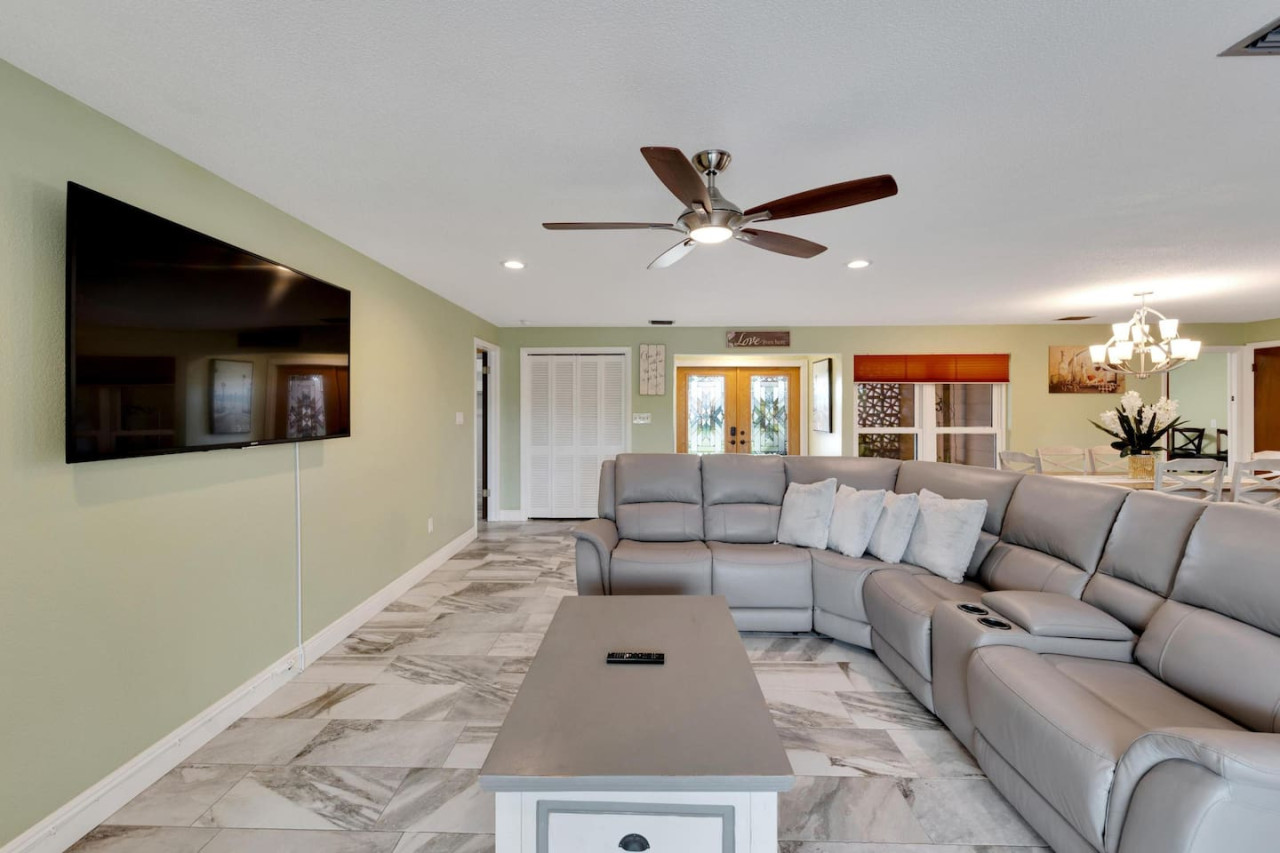 Escape to this fully renovated waterfront home with stunning pool and lake views. The open, airy layout is perfect for families or groups, featuring a modern kitchen with an island that seats 8, a living area with seating for 8, and seamless indoor-outdoor flow to the covered pool and heated jacuzzi. Conveniently located near TPA airport, this home combines luxury, comfort, and convenience for an unforgettable stay.