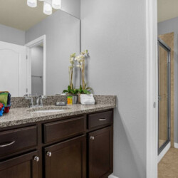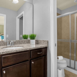 The entire holiday group will be ready for the day in no time with this home’s layout of six full bathrooms. Each is equipped with modern walk-in showers, stainless steel fittings, and spacious vanities with granite tops. Five bathrooms have doored areas with walk-in showers and toilets separate from the arrogance, while the sixth bathroom has a conventional single-room layout.