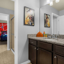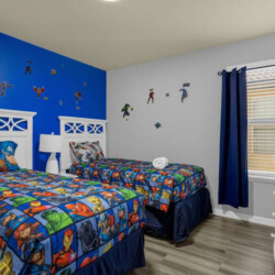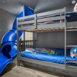 Bedrooms one to five feature four king-sized beds and one queen-sized bed that ensure couples enjoy privacy and comfort during their time away. Bedroom six is a large bedroom fitted with two queen-sized beds. Bedrooms seven and eight have twin beds with matching avengers bedding, perfect for the kids. Bedroom nine is the kid’s favorite featuring an awesome bunk bed with a slide down from the top bunk, a truly unique feature to remember for years to come.