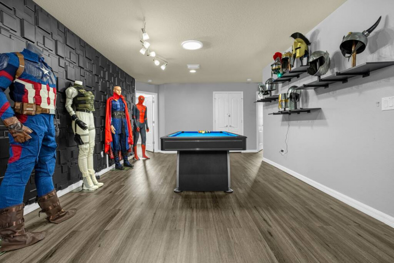 Avengers assemble! This tastefully decorated home with thematic rooms is the perfect place for a memorable holiday for a large family or friend group. With a prime location in a vast resort, this home is near the main attractions and top restaurants. After a long day of exploring, come home to relax in the game room with the newest PS3; private pool, and cozy living spaces.